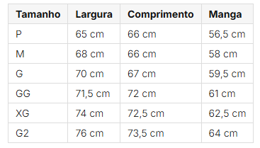 Composição: 50% algodão e 50% poliéster